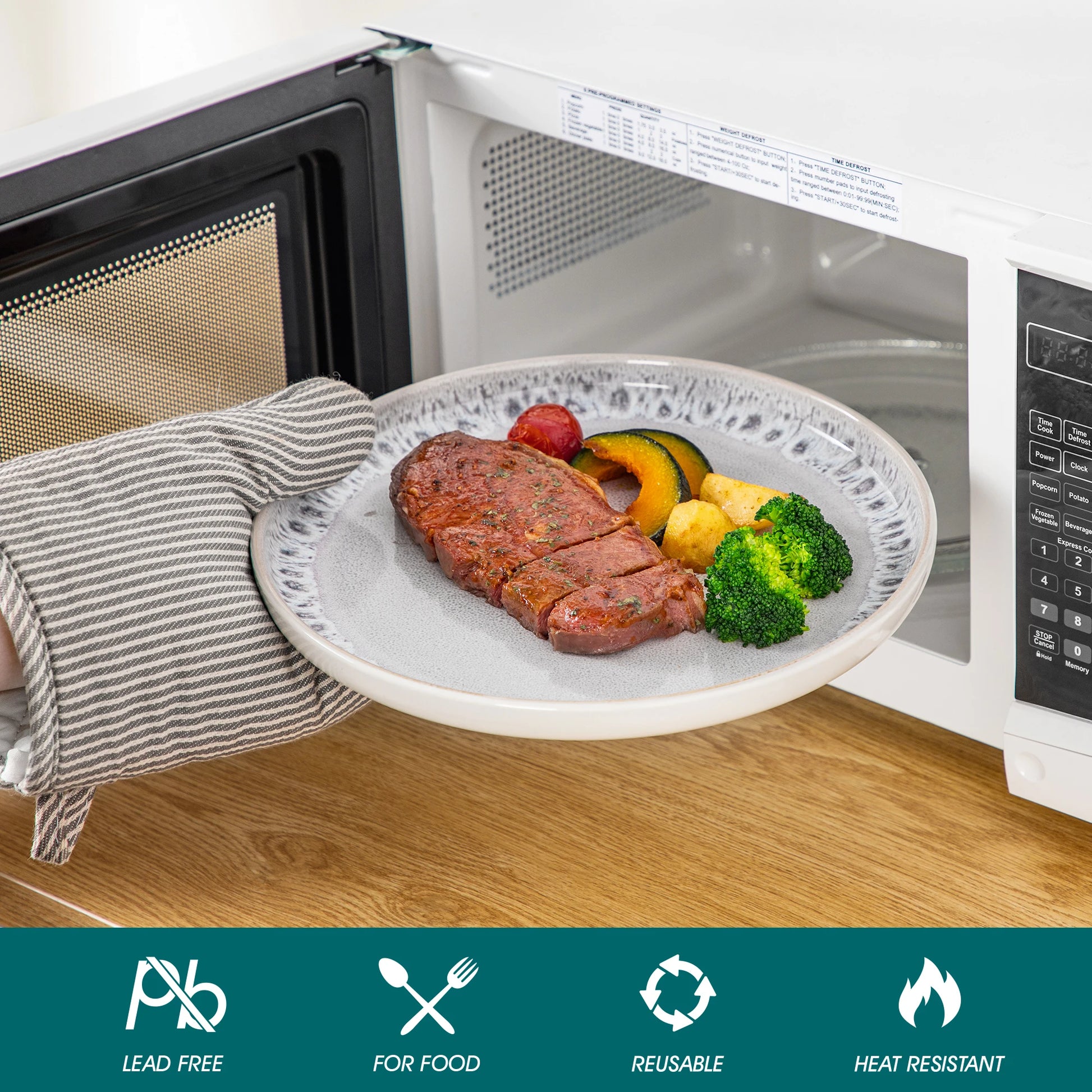 Each piece features a unique, natural marbled effect glaze, created through subtle color variations during the firing process. This artisanal technique makes every plate and bowl one of a kind, adding artistic flair to your dining experience. The high-quality glaze is chip-resistant, food-safe, and easy to clean—perfect for both daily use and elevated table settings.