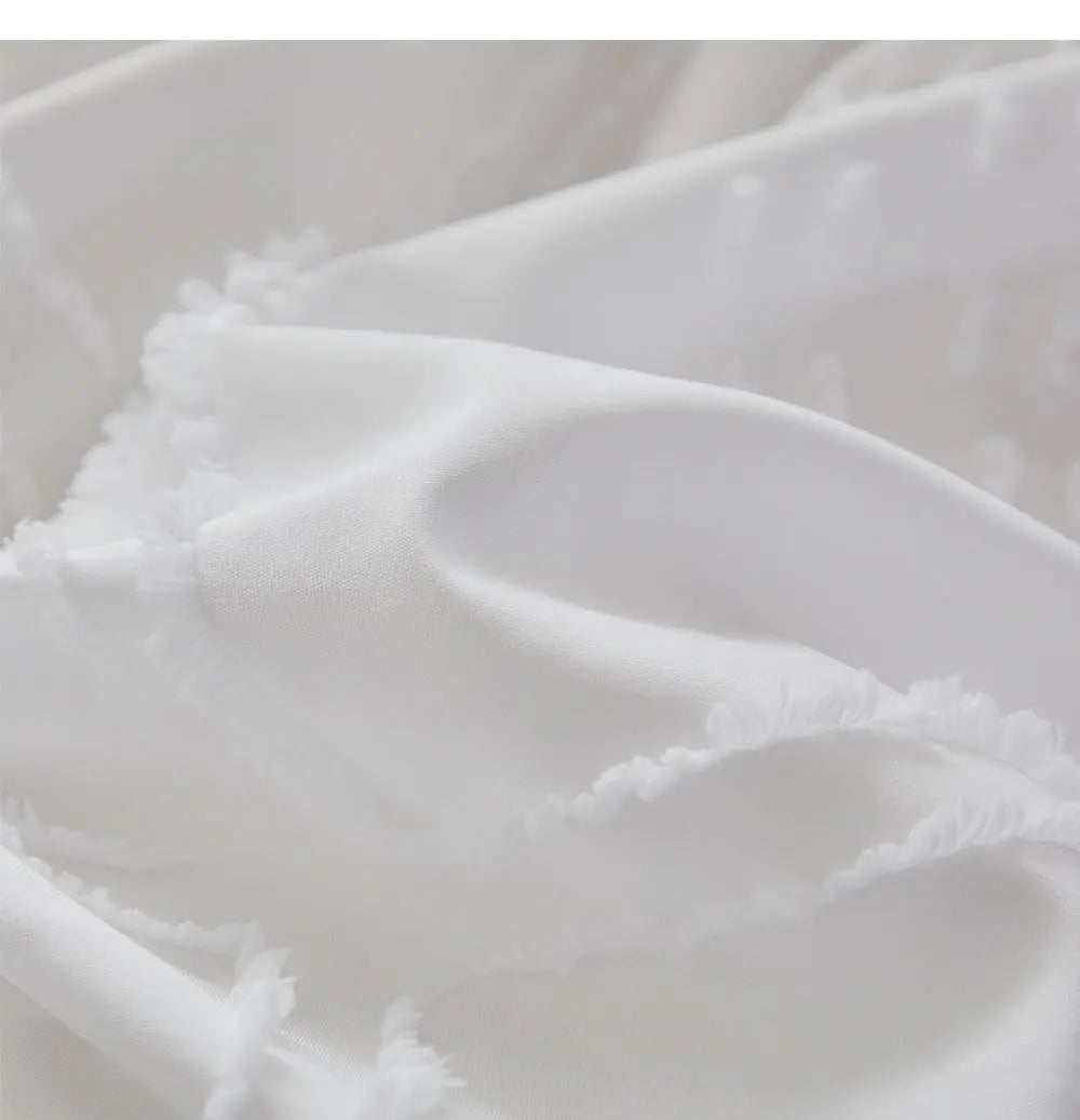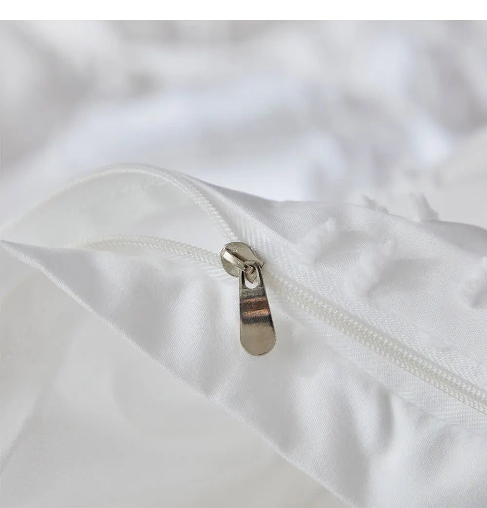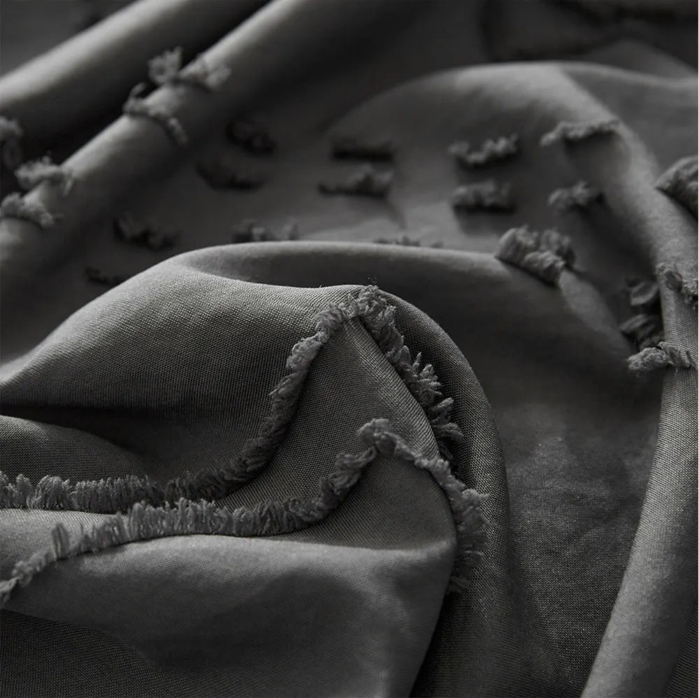 Midnight Grid Textured Boho Duvet Set brings modern depth and bohemian character together in one effortlessly stylish design. The geometric tufted pattern is crafted using tatting techniques, creating a raised, textured look that feels artisanal and bold without being busy. Each diamond and stitched line catches the light gently, giving the bedding a soft, dimensional elegance perfectly suited for minimalist interiors with a warm, soulful twist.