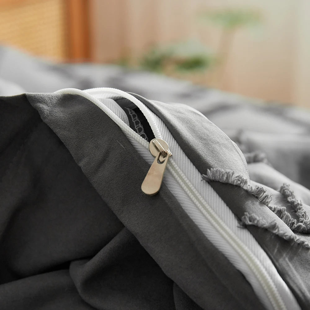 Made from premium microfiber, 100% polyester with a smooth 100TC thread count, this set offers breathable comfort and a cozy feel suitable for every season. The 90gsm fabric weight keeps the duvet lightweight yet warm, draping beautifully across the bed for a clean, tailored finish. The craftsmanship ensures durability while maintaining a soft touch that invites you to unwind after a long day.
