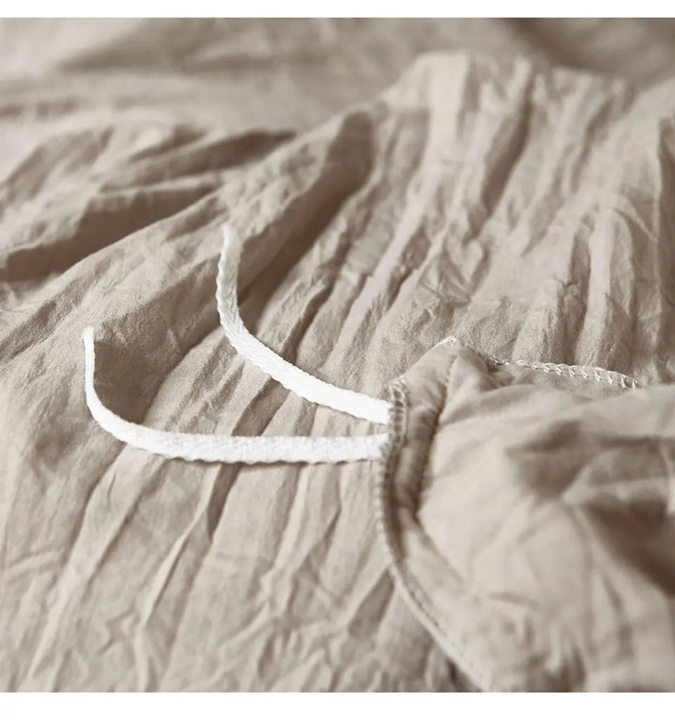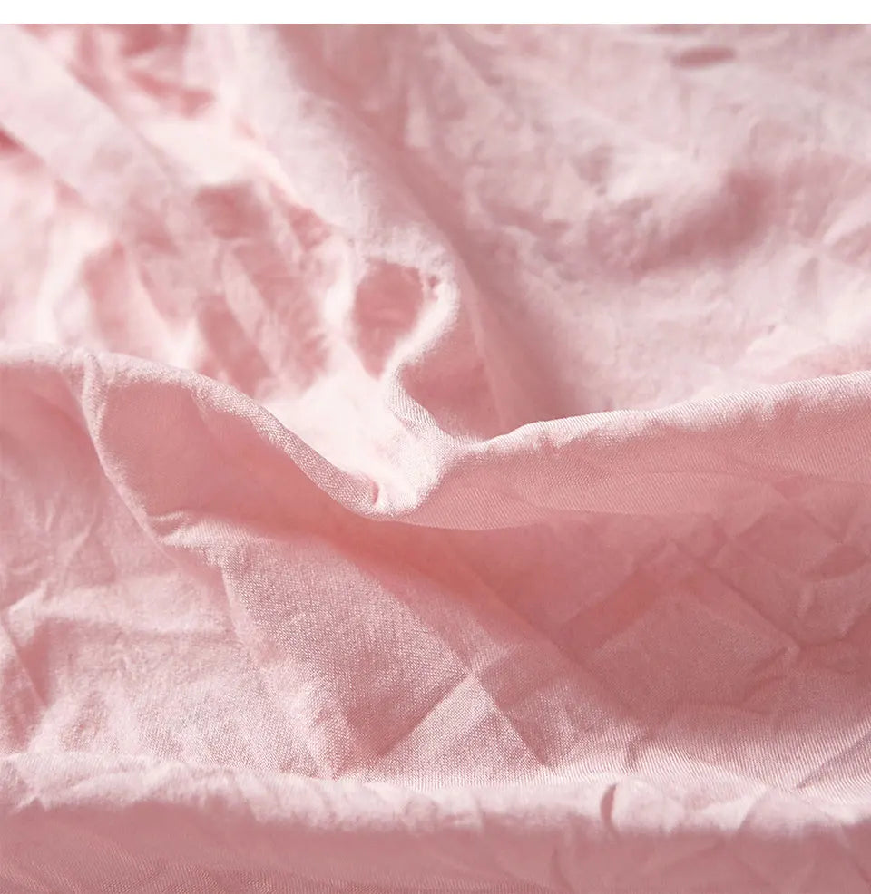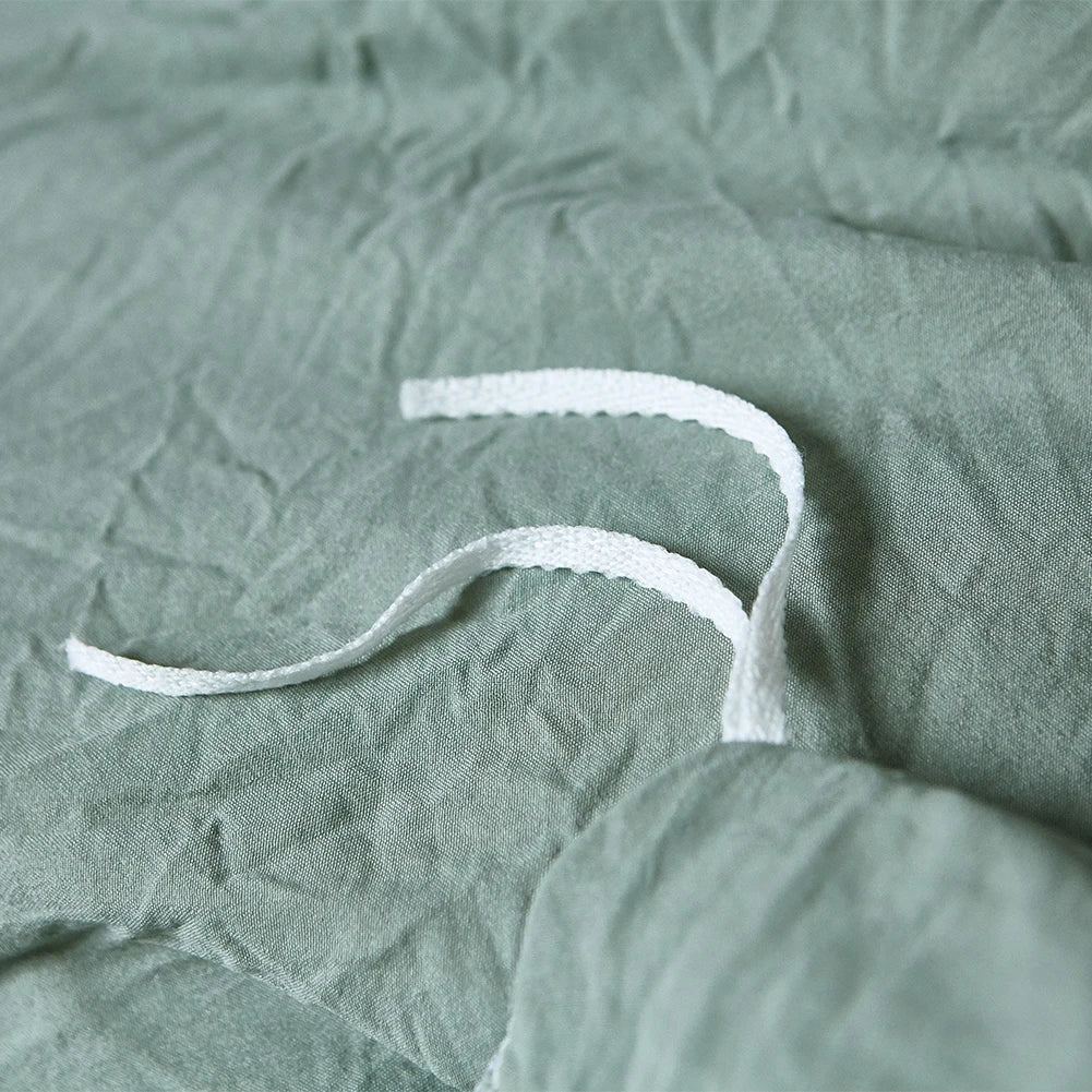 Woven with a traditional tatting technique, the 100% polyester microfiber fabric offers a smooth, skin-friendly feel and long-lasting durability. The lightweight 90gsm construction keeps you cozy without overheating, making it perfect for year-round comfort. Its naturally relaxed style means you get that cozy, crinkled aesthetic without worrying about constant ironing, just wash, dry, and let the fabric fall into place.