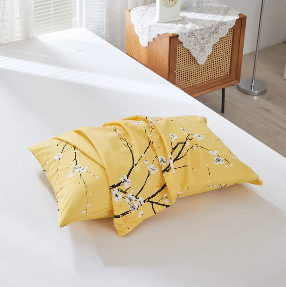 Bask in the warmth of spring all year long with the Sakura Spring Yellow Duvet Cover Set. Inspired by the delicate beauty of cherry blossoms in bloom, this bedding brings a golden radiance to your room, creating a space that feels alive with sunlight and serenity. The vibrant yellow base is adorned with soft white sakura branches, capturing the quiet poetry of nature in full bloom.