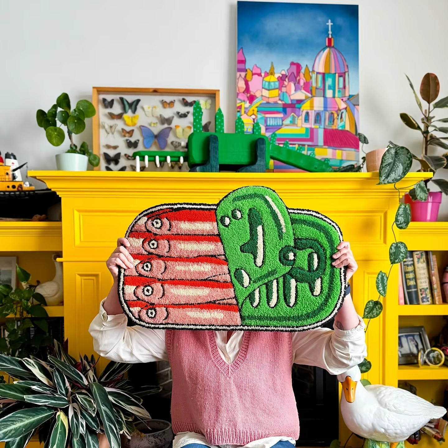 Perfect for bathrooms that embrace personality, creativity, or eclectic design, the Sardines Canned Bath Mat combines warmth, softness, and practicality with a distinctive artistic edge, proving that functional essentials can also be fun and expressive.