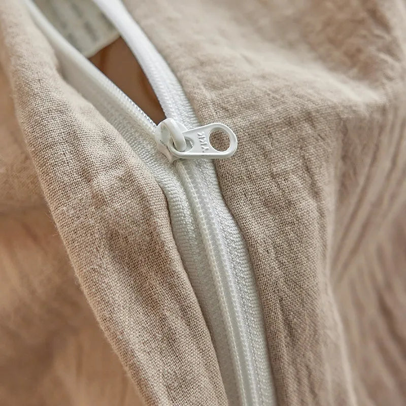 The set undergoes a washed process technique, giving it a gently relaxed finish that softens the fibers and enhances comfort from the very first night. Its comfortable, ultra-soft, and breathable composition makes it ideal for sensitive skin and those who appreciate understated luxury.