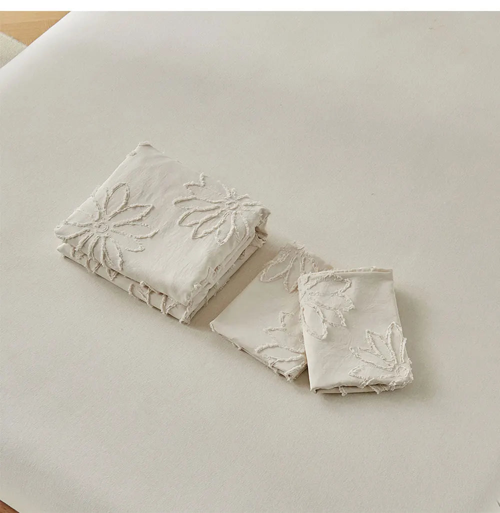 The neutral cream tone enhances its understated elegance, blending effortlessly into any decor, from modern minimalist to bohemian or country chic. Every detail, from the delicate tufting to the finely woven finish, speaks of calm simplicity and craftsmanship. The DaisyLoom Textured Bloom Duvet Set turns your bed into a sanctuary of natural beauty and quiet comfort, where relaxation truly feels like sleeping in a field of soft blooms.