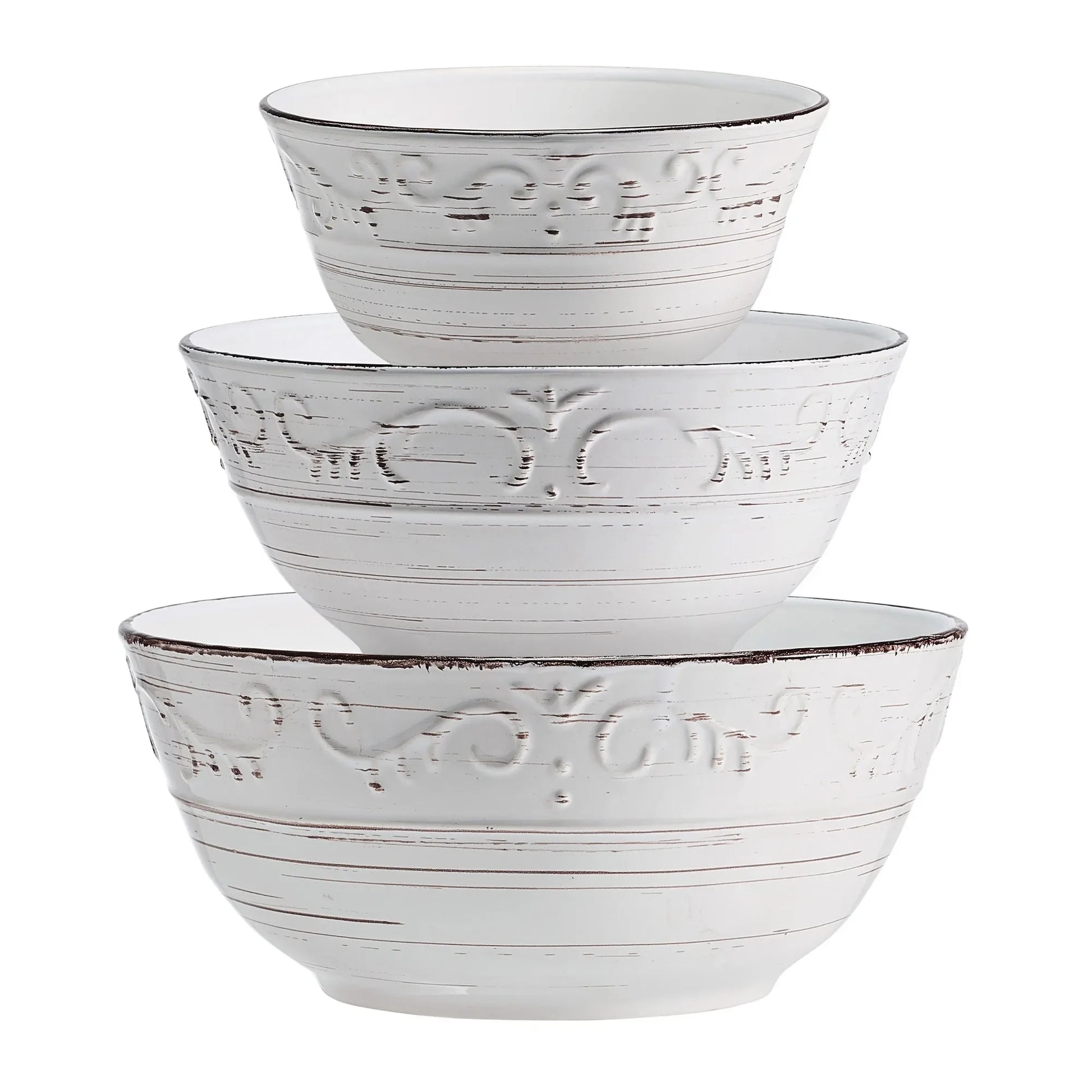 Rustic White Trellis Stoneware Serving Bowl Set Of 3 Pieces