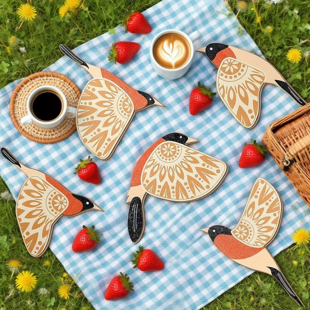 The Spirit Birds of Harmony Wall Art features five unique pieces, each with its own subtle differences, allowing you to create a customized arrangement that fits your style. The birds come in varying sizes, approximately 6.5 × 4.44 in, 6.5 × 4.41 in, 6.5 × 4.33 in, 6.5 × 4.81 in, and 6.5 × 6.07 in, adding depth and visual interest to your wall.