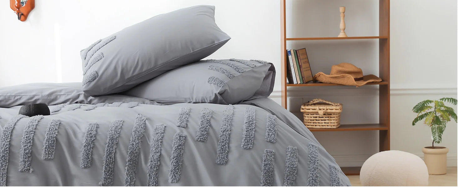 A refined tufted embroidery pattern adds subtle texture and depth, giving the duvet set a relaxed boho and shabby-chic character that complements both modern and rustic interiors. The lightweight construction allows airflow to circulate naturally, helping regulate body temperature so you stay cool in warmer months and comfortably warm during cooler seasons.